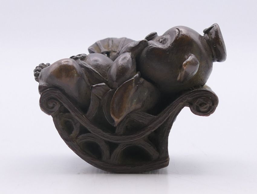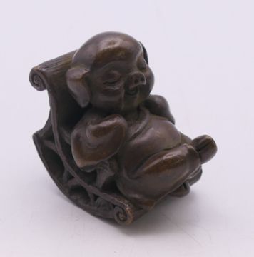 A pair of bronze seated pigs. Larger 4.5 cm high.