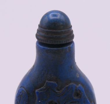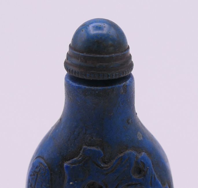 A Chinese blue snuff bottle and stopper. 8.5 cm high.