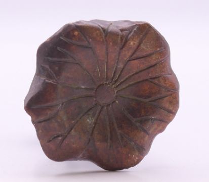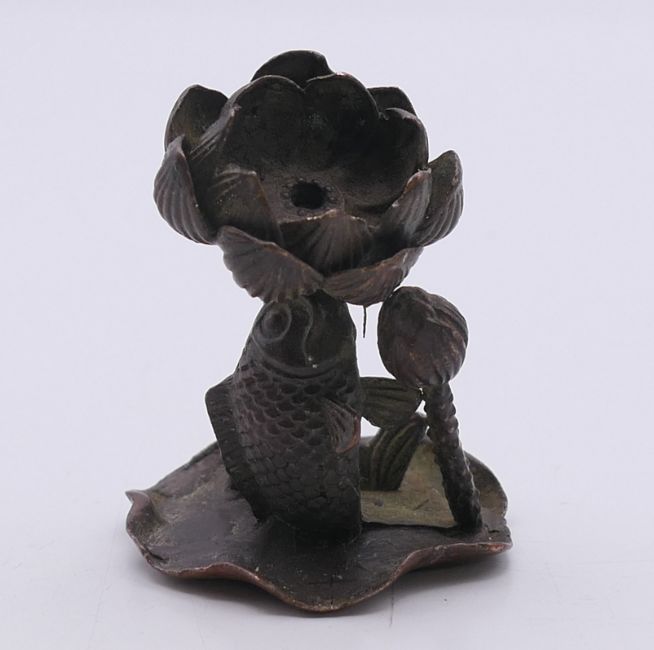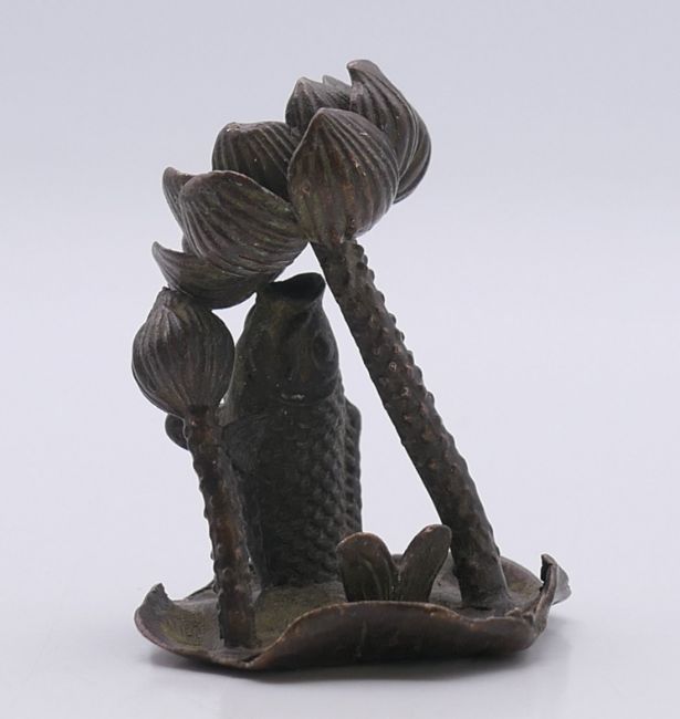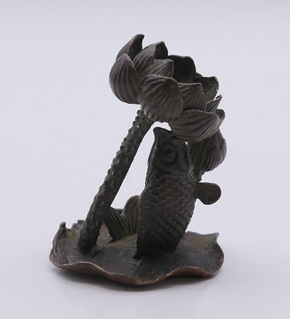 A model of a fish on a lily pad. 5.5 cm high.