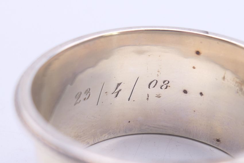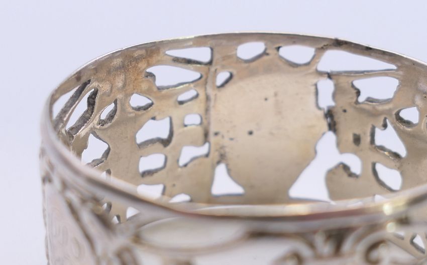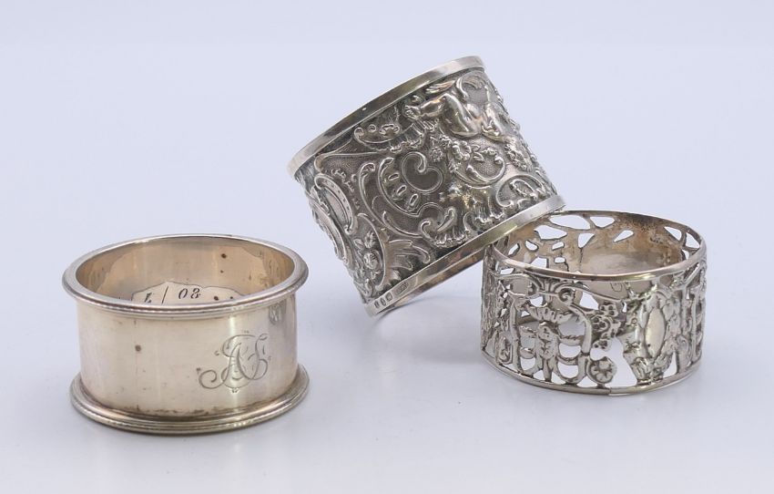 Three silver napkin rings. 88.7 grammes. Larger 3.75 cm high.