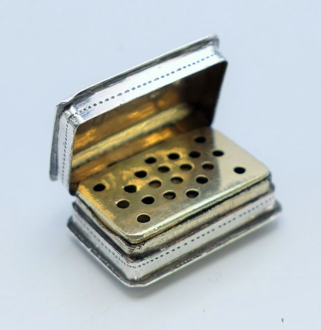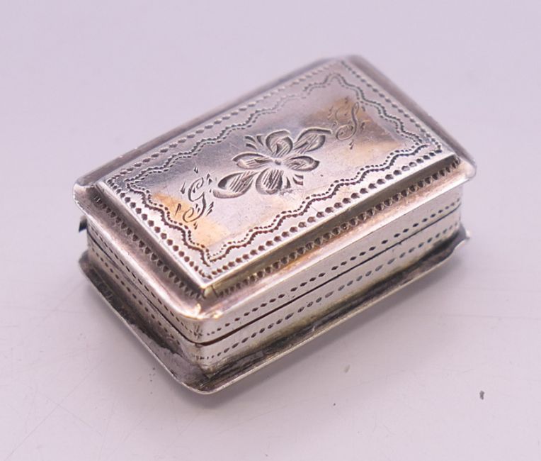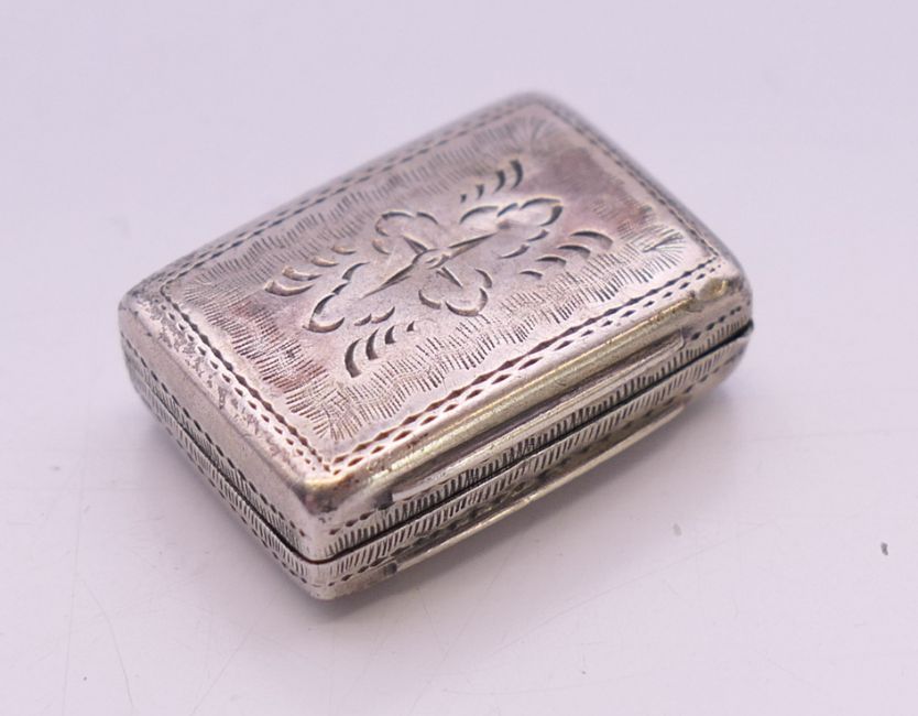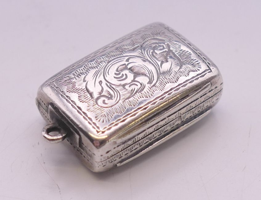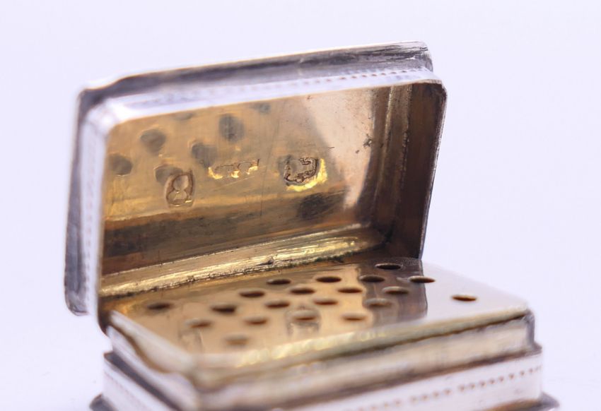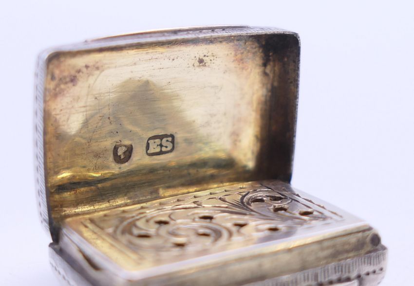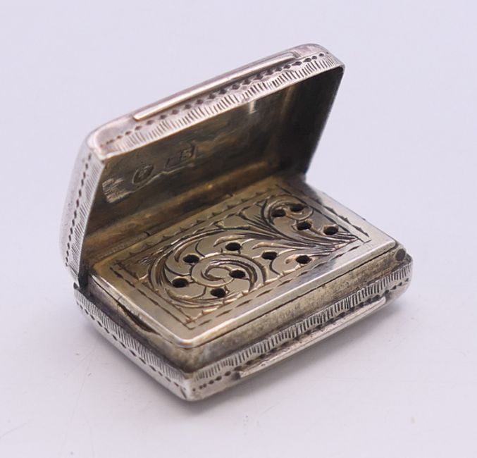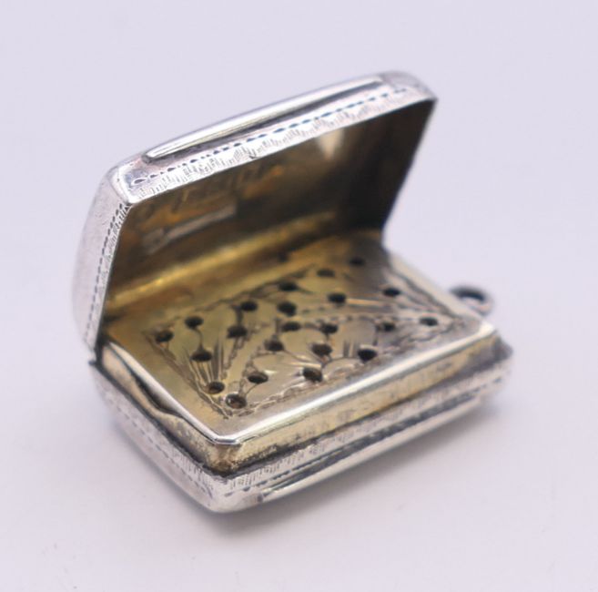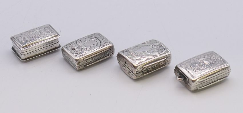 A small Georgian silver vinaigrette and three Victorian silver vinaigrettes. Each approximately 2 x 1.5 cm.