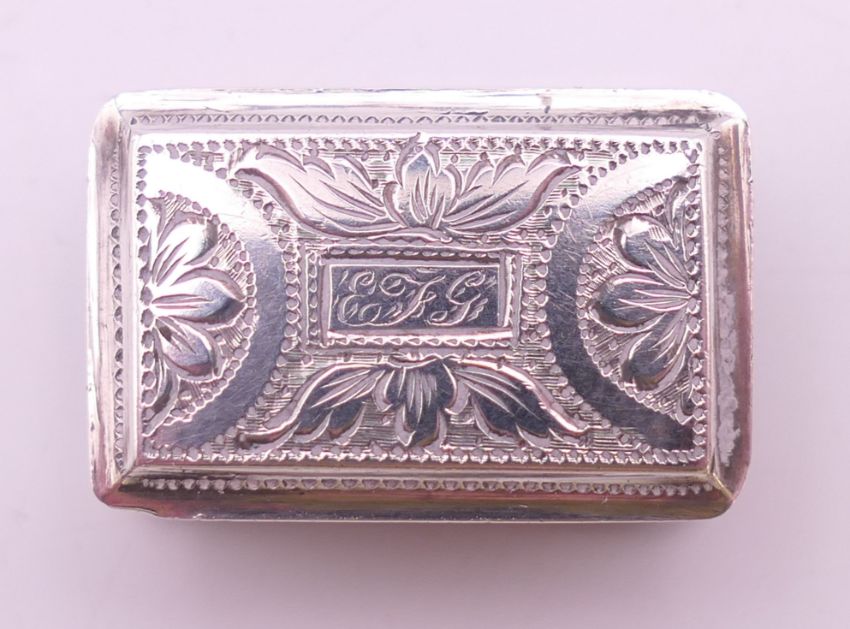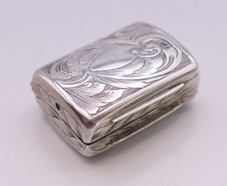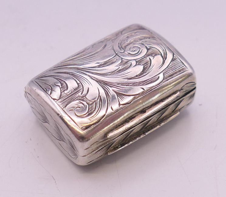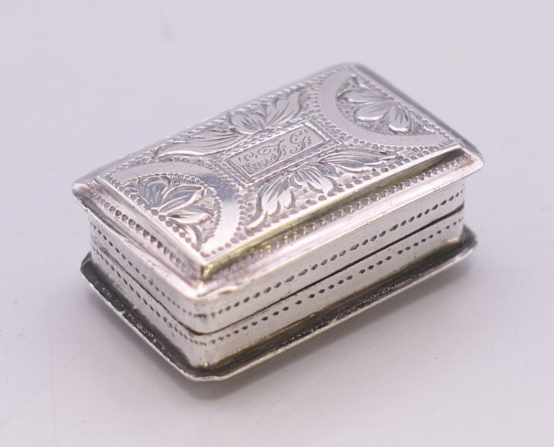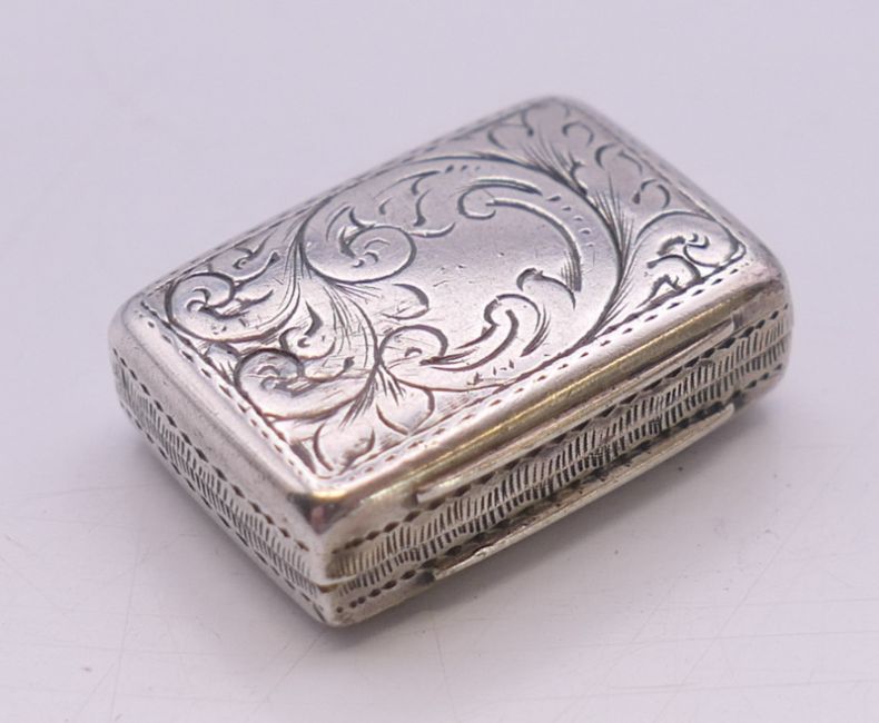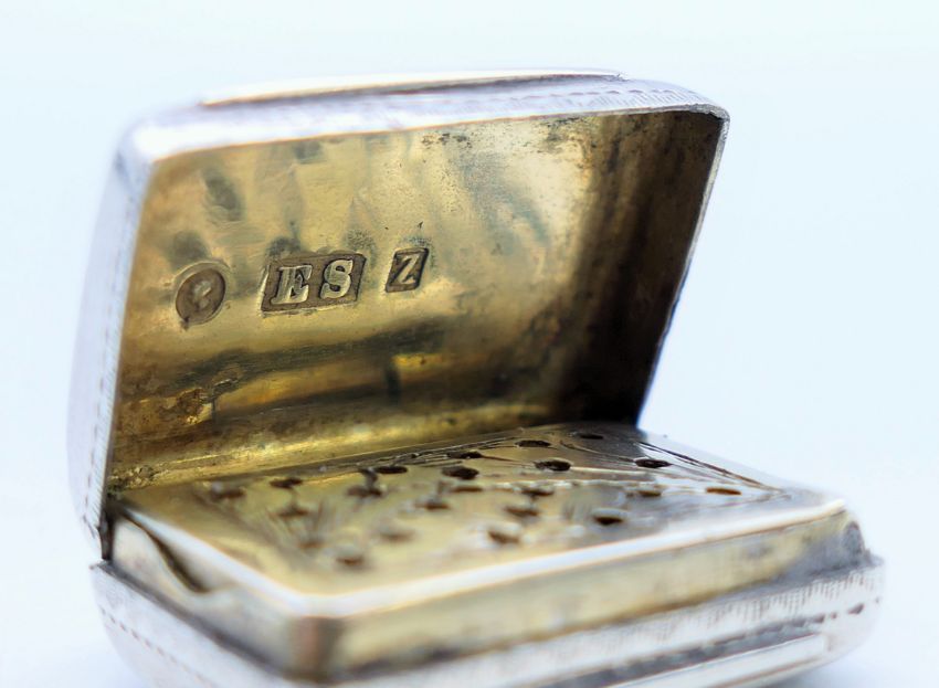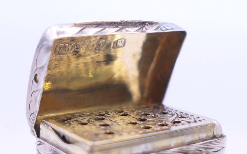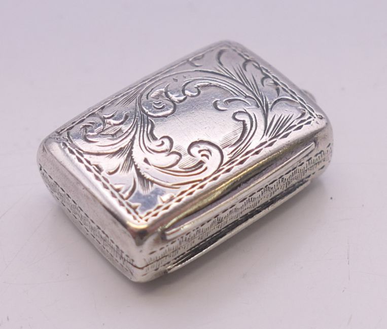 A small Georgian silver vinaigrette and three Victorian silver vinaigrettes. Each approximately 2 x 1.5 cm.