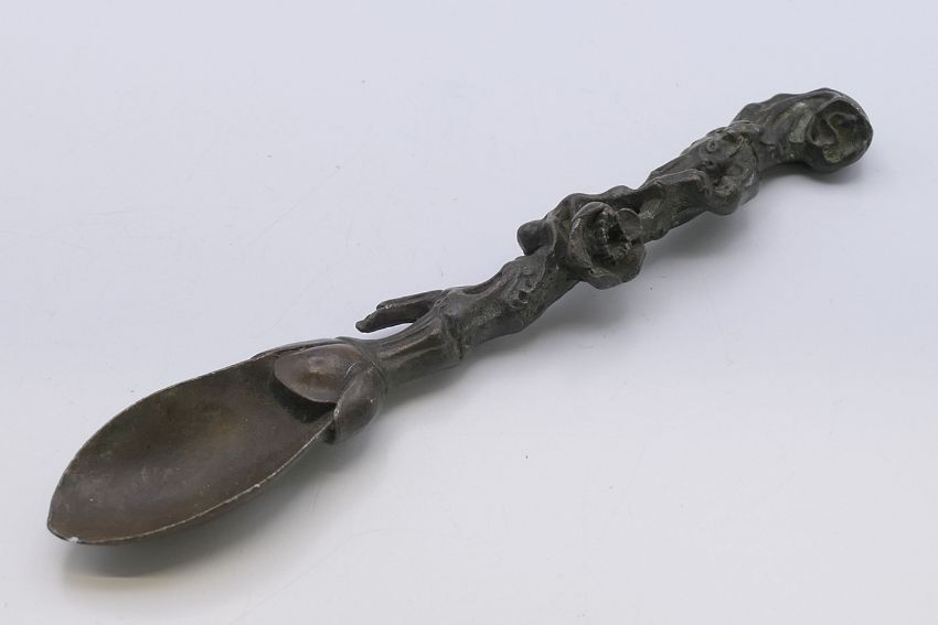 A Chinese bronze spoon. 19 cm long.