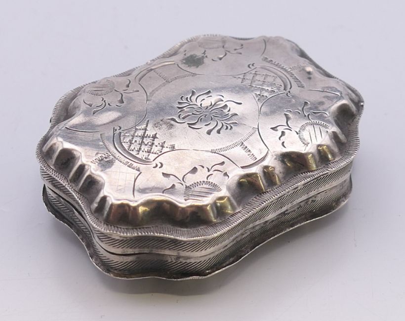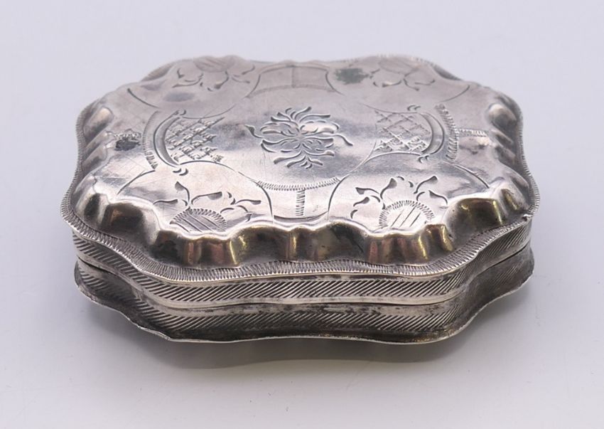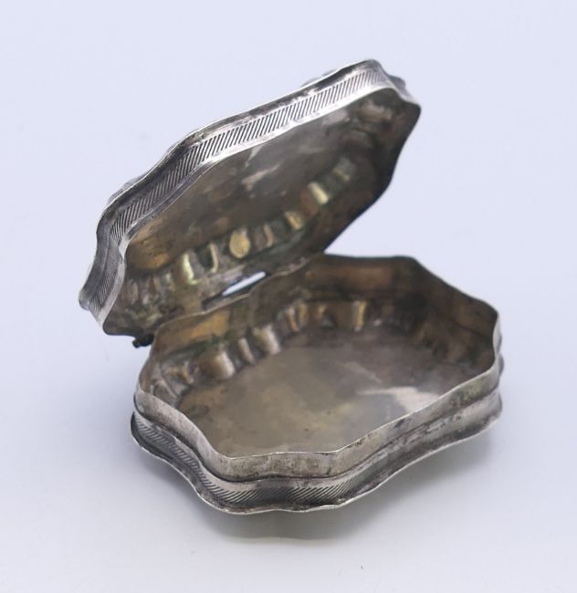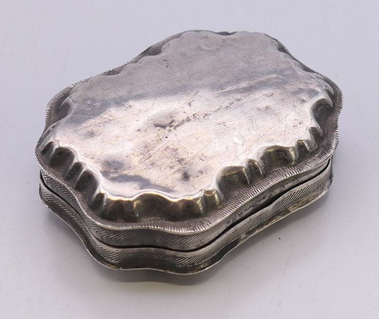 A silver pill/snuff box. 5.5 x 4 x 1.5 cm.