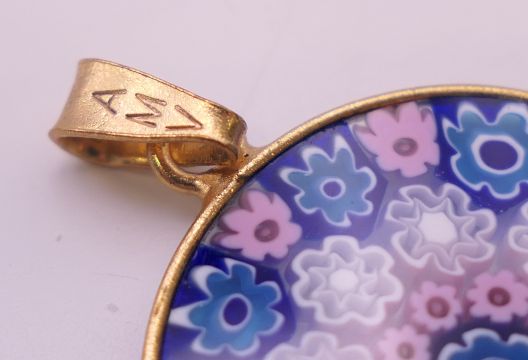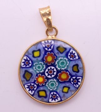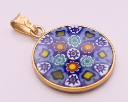 Two silver gilt Venetian millefiori glass pendants. 2.5 and 2 cm diameter respectively.