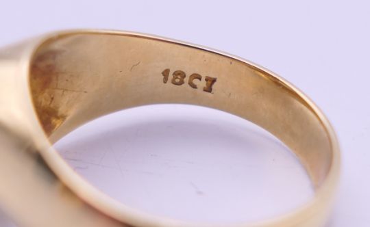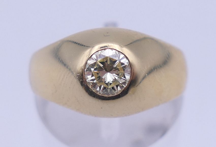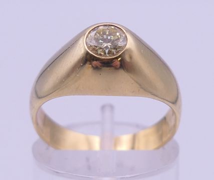 An 18 ct gold 50 point Transvaal diamond ring. Ring size O. 5.9 grammes total weight.
