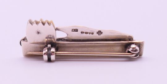 An Ann Powell handmade one-off silver, gold and mother-of-pearl brooch decorated with a lily. 3.5 cm wide