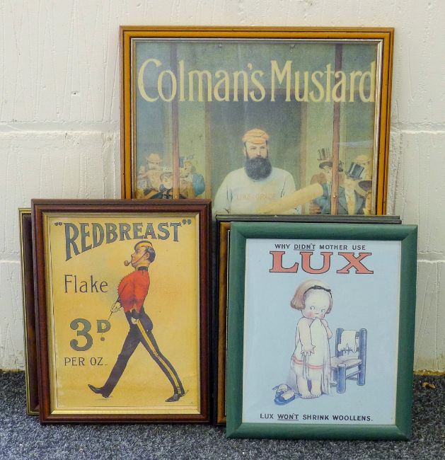 A quantity of advertising prints, each framed and glazed, the largest 37.5 x 58 cm.