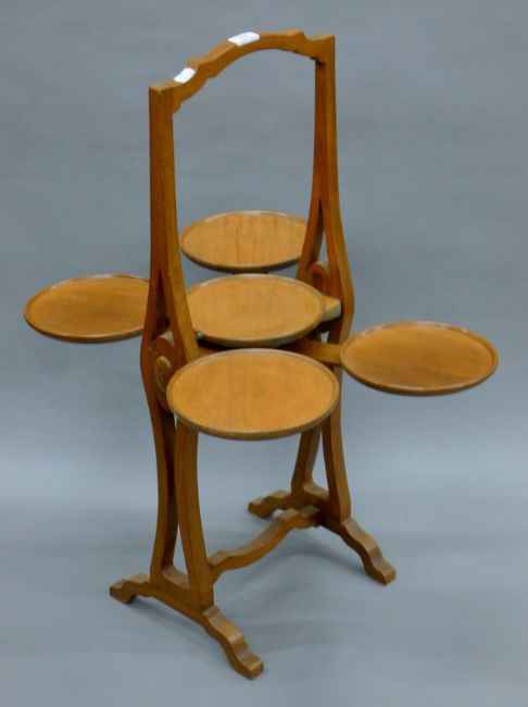 An early 20th century monoplane-type folding cake stand. 84 cm high.