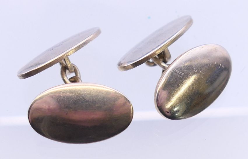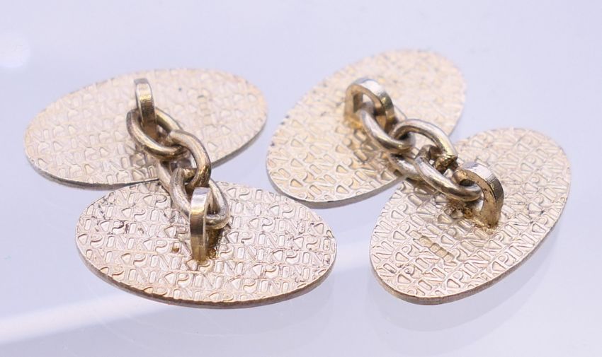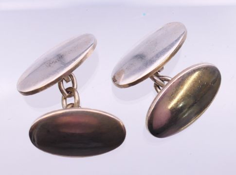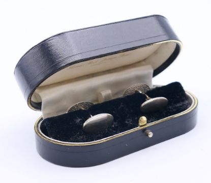 A pair of silver cufflinks in a Pink of London box. Each 2 cm long.