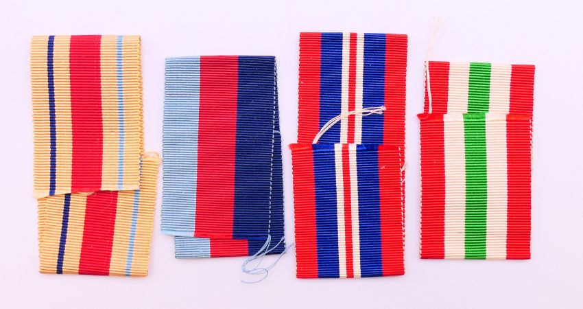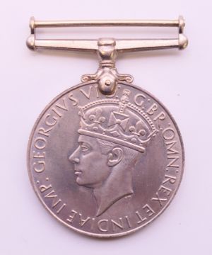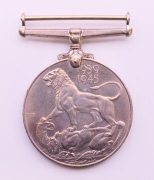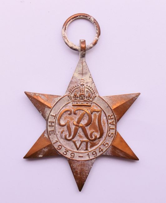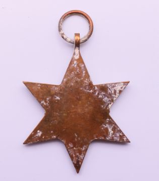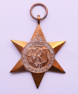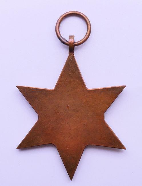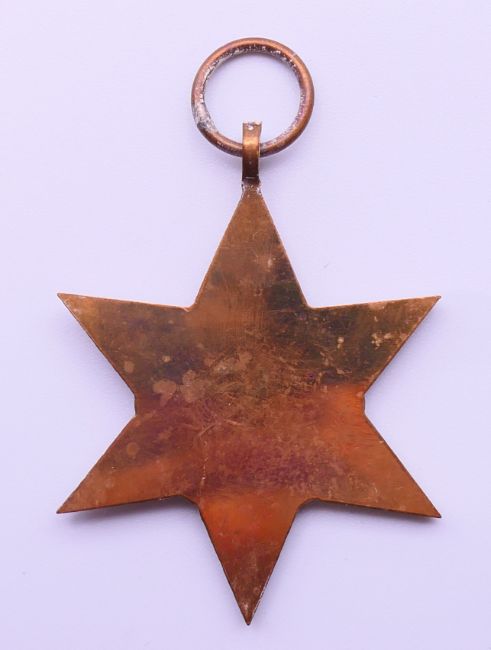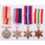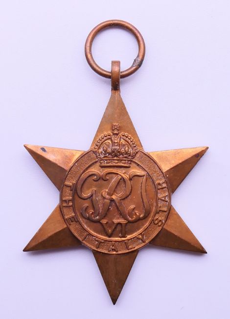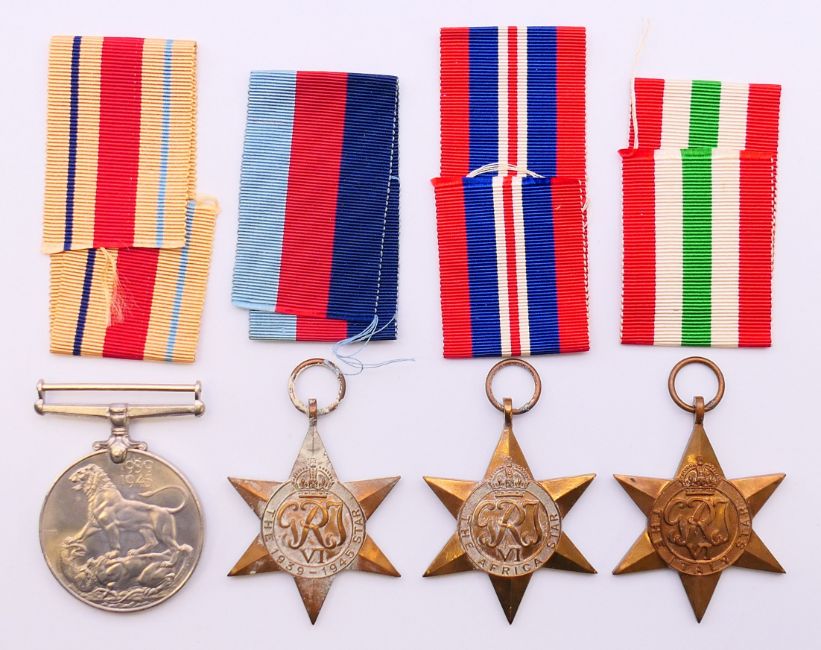 A group of four WWII medal including the Defence Medal, the Africa Star, the Italy Star and a 1939-1945 Star.