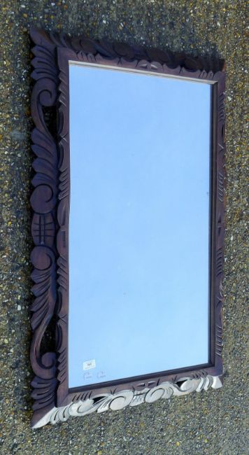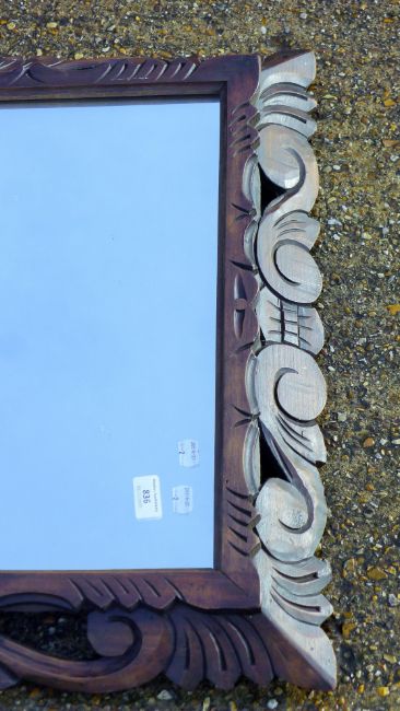 A Victorian carved oak mirror. 101 x 68 cm.