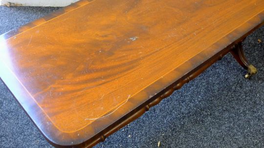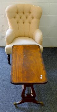 A coffee table and a nursing chair. The former 98.5 cm long x 43 cm high.