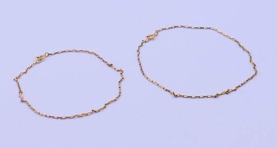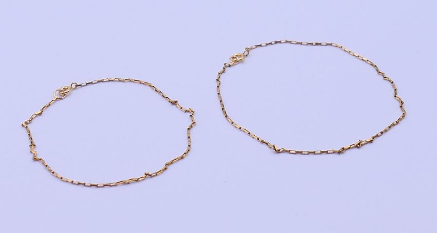 Two 1/20th 14 K gold-filled bracelets. 20 and 23 cm long. 2.1 grammes