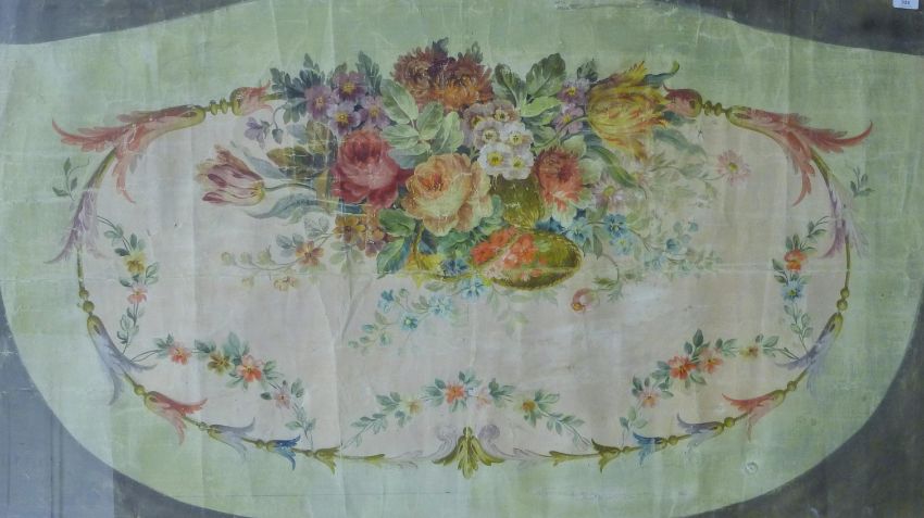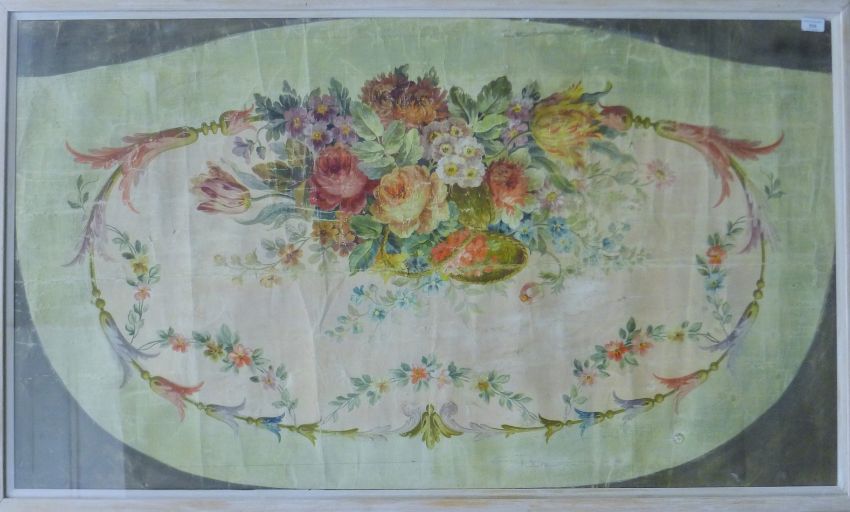CONTINENTAL SCHOOL 19TH CENTURY, needlework seat cover design, gouache and body colour, framed and glazed. 87 x 145 cm overall.
