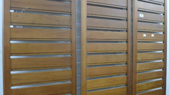 A mid-20th century stacking bookcase/room divider section. 201 cm high.