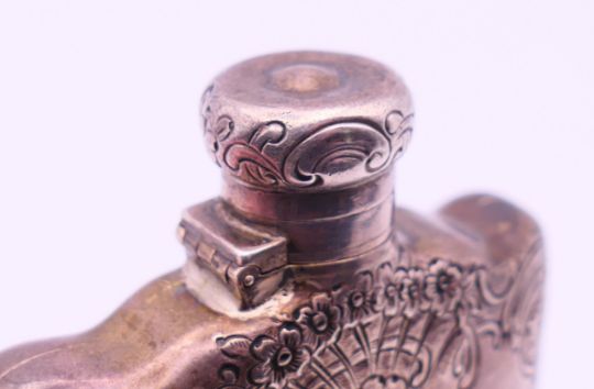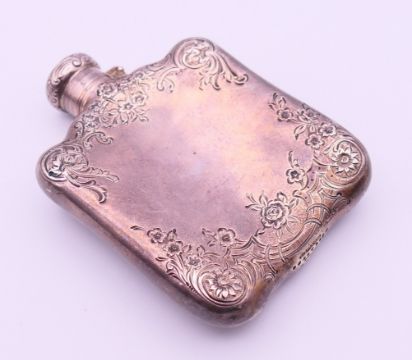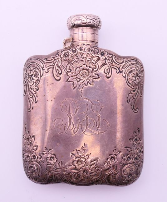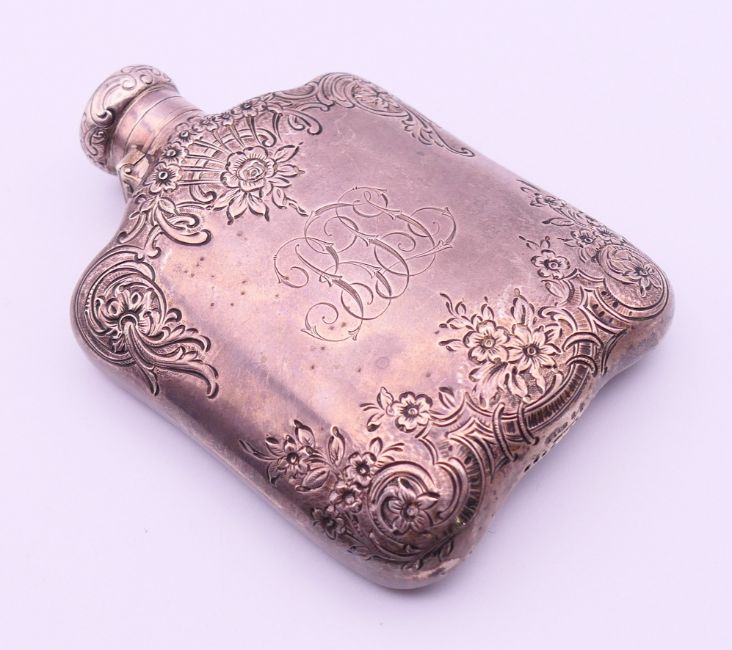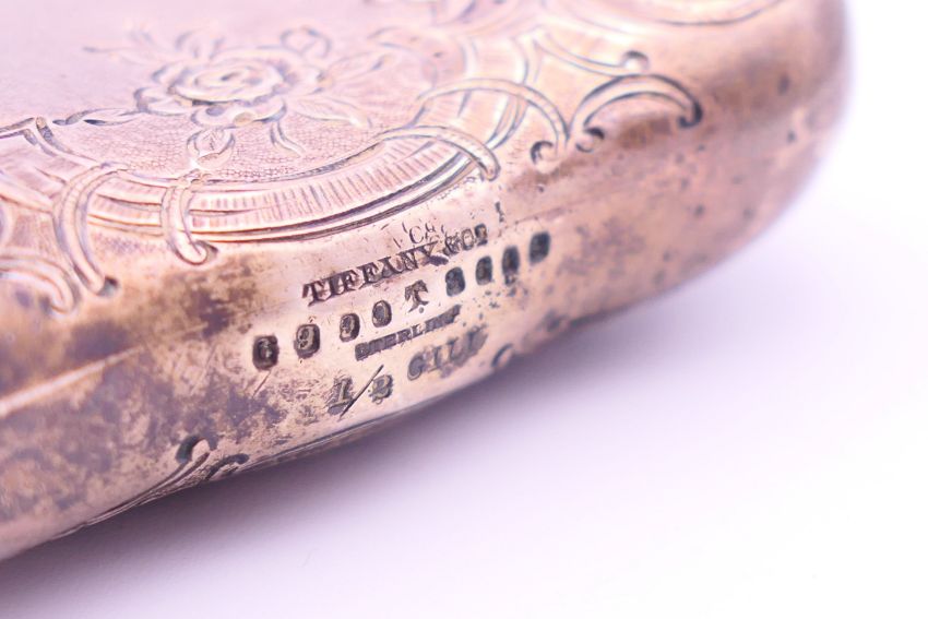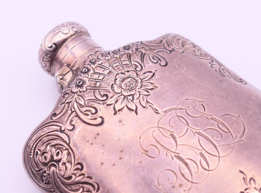 A Tiffany & Co sterling silver hip flask. 10 cm high.108.2 grammes.