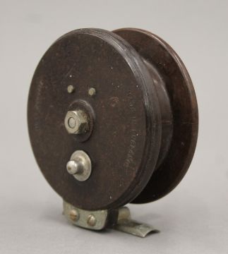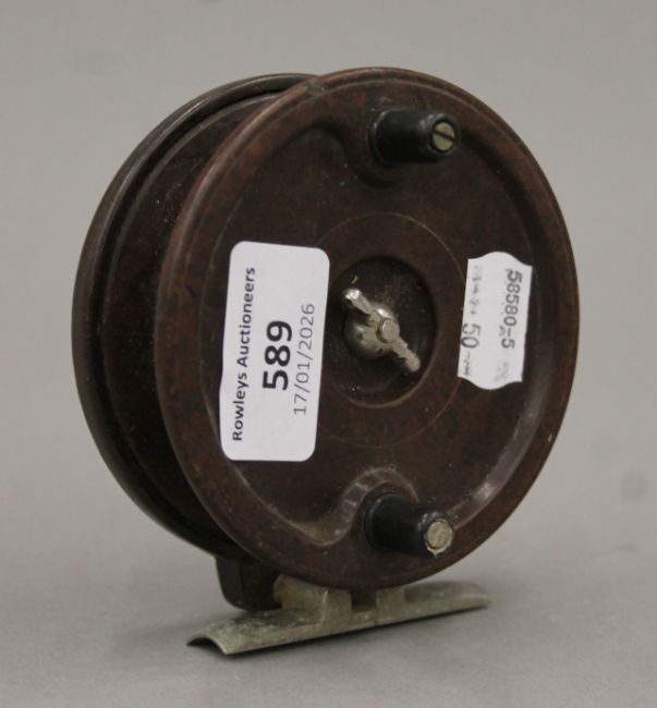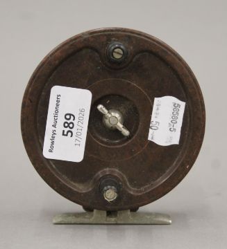 An Allcock Aerialite fishing reel. 9.5 cm diameter.
