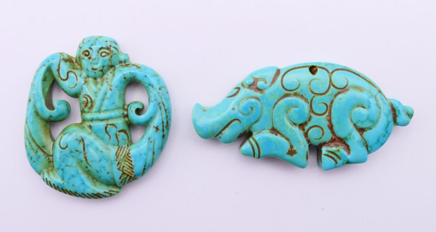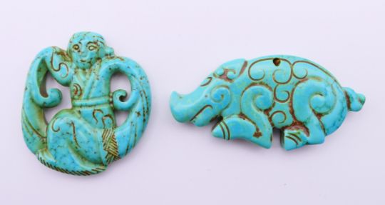 Two Tibetan carvings. Figure carving 5 cm high, boar carving 3.5 cm high.