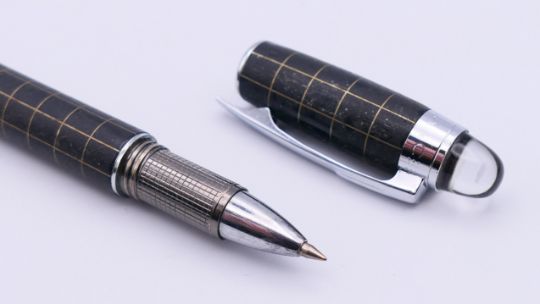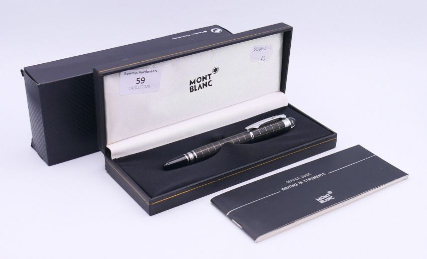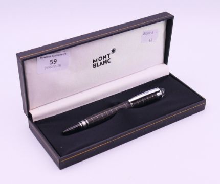 A boxed Mont Blanc ballpoint pen. 14 cm high.